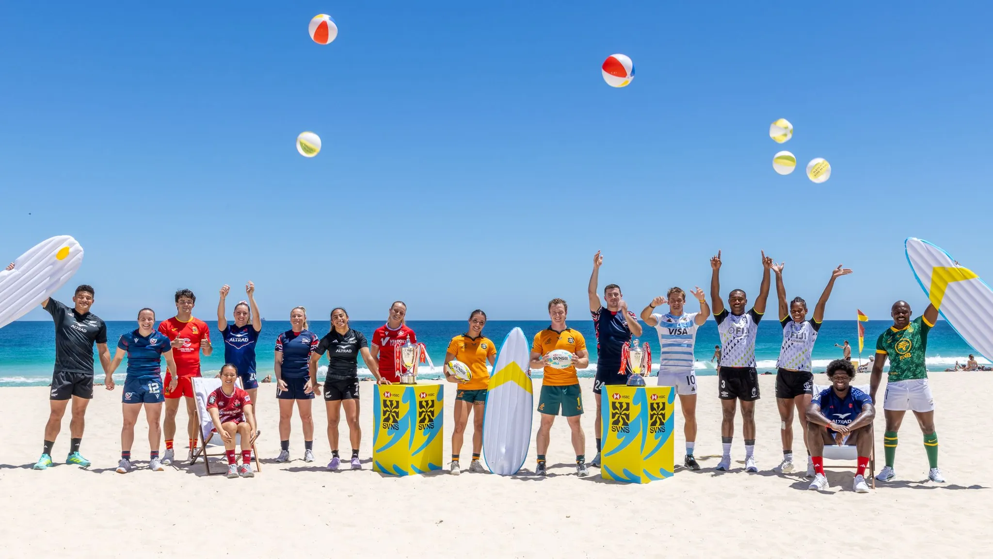 Team captains came together at Scarborough Beach Tuesday to launch HSBC SVNS Perth, soaking up the sunshine and the energy ahead of what promises to be a thrilling weekend of rugby sevens.